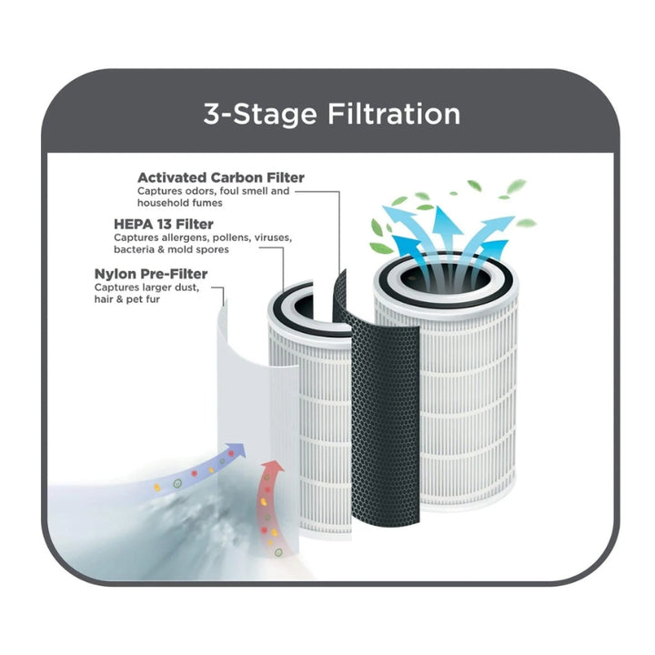 5. فلتر HEPA 13 مع فحم نشط لإزالة الجزيئات المحمولة في الهواء والروائح
