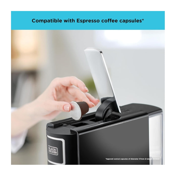ماكينة قهوة بالكبسولات 1140 واط من بلاك+ديكر — Black+Decker CCM100-B5 Capsule Coffee Machine