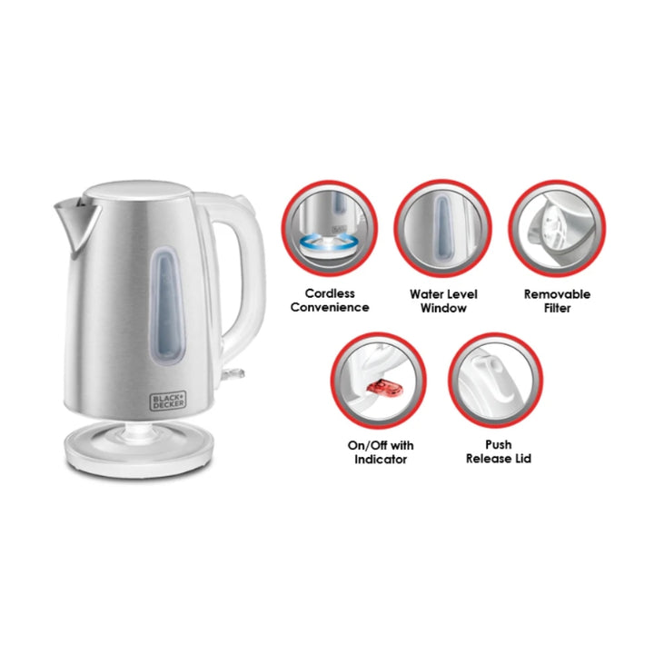 Black&Decker JC454-B5 1.7L STAINLESS STEEL KETTLE WHITE - غلاية كهربائية ستانلس ستيل بسعة 1.7 لتر وبقدرة 2200 واط من بلاك اند ديكر ابيض