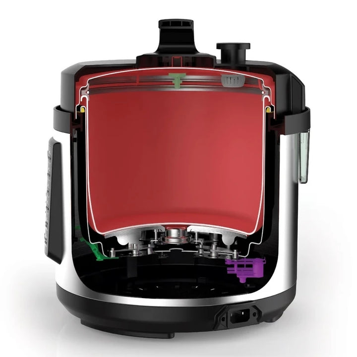 - وظائف 7 في 1: يعمل كـ قدر ضغط، جدر طهي بطيء، جدر أرز، بخار، صانع زبادي، صانع شوربة، وجهاز تدفئة، ليحل محل عدة أجهزة في جهاز واحد.