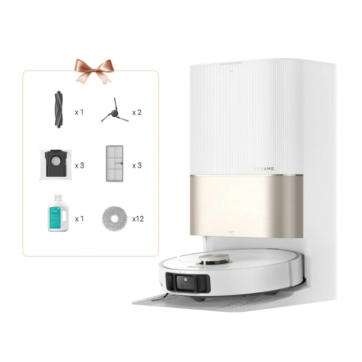 7. قاعدة صيانة أوتوماتيكية كاملة: تفريغ الغبار تلقائيًا في حقيبة سعة 3.2 لتر، وإعادة ملء المياه والمنظف، وغسل الممسحة تلقائيًا.