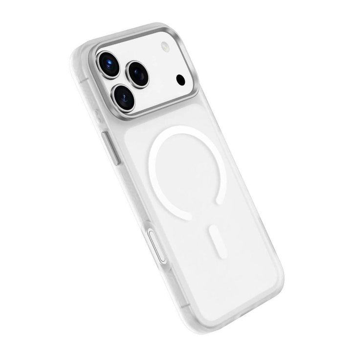 Green Lion Matte Mag Safe X For iP 17 Pro Max Silver Titanium - كفر ايفون 17 برو ماكس ماك سيف من كرين فضي تيتانيوم