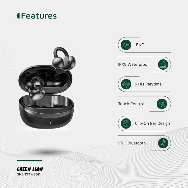 Green Lion Sonix Clip On Earbuds Black - سماعات بلوتوث من كرين اسود