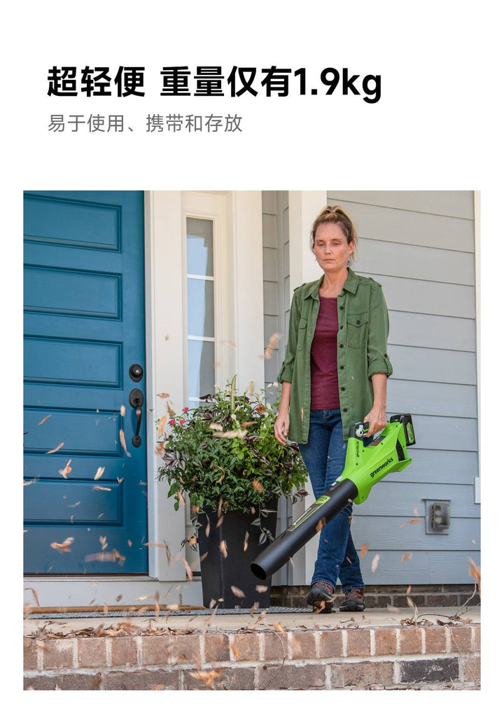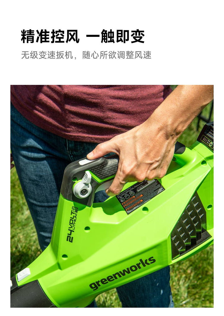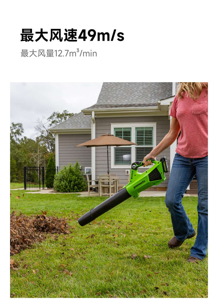 يوفر منفاخ الأوراق اللاسلكي Greenworks 24V تجربة تنظيف احترافية وسريعة بفضل محركه القوي وتصميمه خفيف الوزن. سواء كنت تنظف الحديقة، أو الشرفة، أو السيارة، ستحصل على تدفق هواء قوي ودقيق يساعدك على إنجاز العمل بسهولة. بفضل تقنية التحكم التدريجي بالسرعة يمكنك ضبط مستوى الهواء حسب الحاجة، بينما يضمن نظام حماية البطارية BMS أداءً مستقراً وآمنًا في كل مرة. إنه الحل المثالي لمن يبحث عن جهاز متنقل، صامت، وفعال بيئيًا لتنظيف المساحات الخارجية.