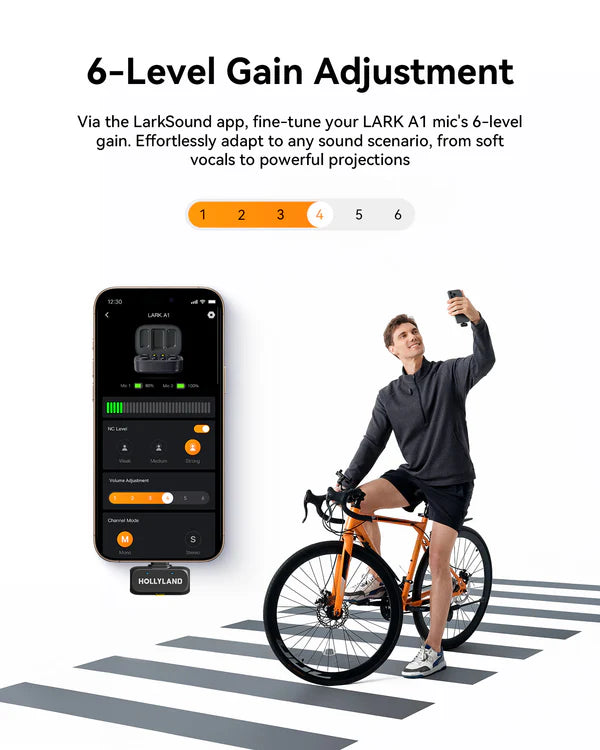 استمتع بتجربة تسجيل احترافية في أي وقت ومع أي جهاز ذكي مع Hollyland LARK A1، الميكروفون اللاسلكي فائق الوضوح المصمم للاتصال السلس بالهواتف الذكية بنظام التشغيل التوصيل والتشغيل Plug & Play....