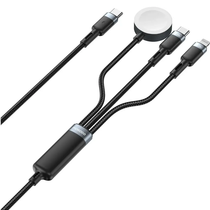 Porodo 60W C to C+L+Watch Charger Black - كيبل تايب سي 3 في 1 60 واط من بورودو اسود
