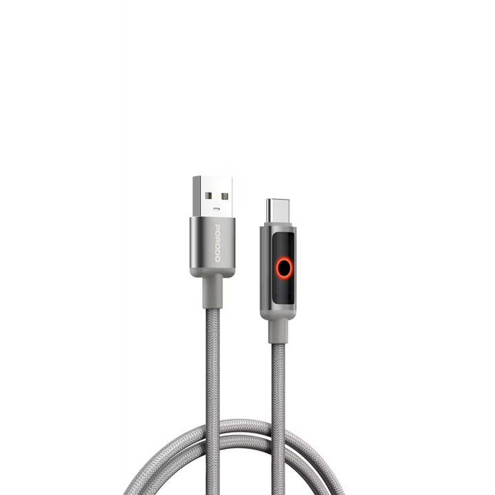 Porodo ChargeLite USB-A To USB-C High-Speed Charging Cable Grey - كيبل يو اس بي تايب سي عالي السرعة من بورودو رمادي