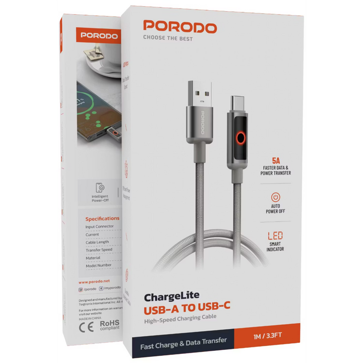 Porodo ChargeLite USB-A to USB-C High-Speed Charging Cable – Grey