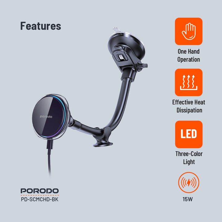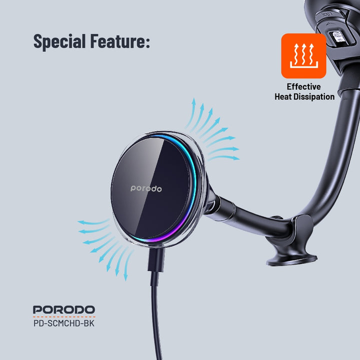 Porodo Semi conductor magsafe charging holder Black - ستاند سيارة ماك سيف بتقنية التبريد من بورودو اسود