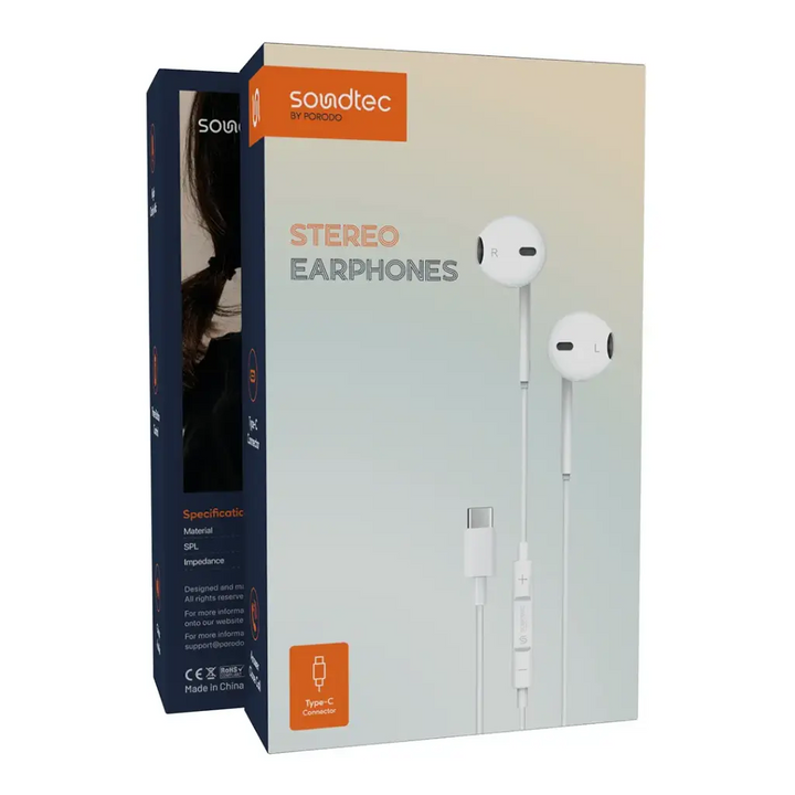 Porodo Soundtec Stereo Earphones Type-C with High-Clarity Mic - White