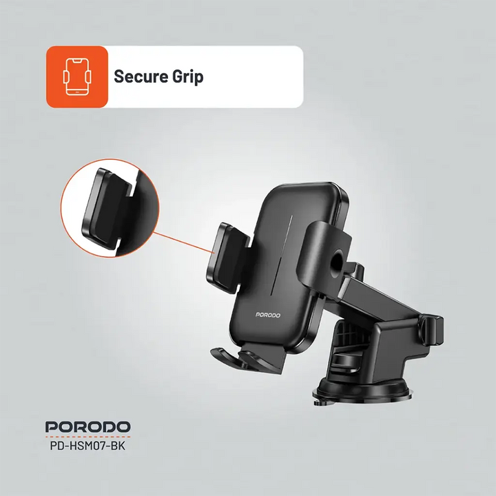 Porodo Universal Phone Stand Adjustable Clamp Car Phone – Black