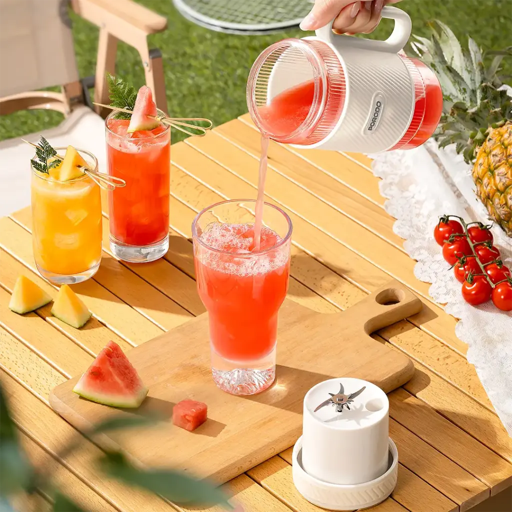 استمتع بالسموذي والعصائر الطازجة أينما ذهبت مع خلاط بورودو المحمول 2 في 1. يأتي الخلاط مزودًا بمحرك عالي السرعة يصل إلى 18,500 دورة في الدقيقة لتوفير خلط سريع وسلس للثلج والفواكه. تصميمه المزدوج يسمح باستخدام كوب قصير بسعة 350 مل وكوب طويل بسعة 500 مل، مع سعة إجمالية تصل إلى 600 مل و800 مل على التوالي. يعمل الخلاط ببطاريتين 1300 مللي أمبير مع شحن USB-C سريع، ويأتي مع حزام ومقبض محمول لسهولة الحمل، بالإضافة إلى غطاء شرب آمن لمنع الانسكاب.