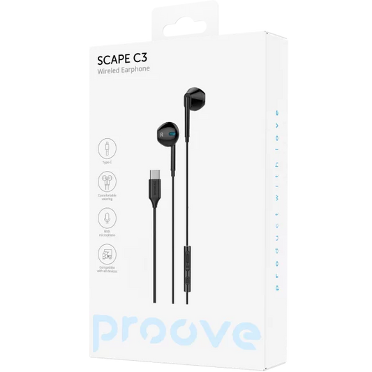 Proove Wired Earphones (Scape C3 Type-C black) - سماعات تايب سي سلكية من بروف اسود