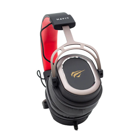 Havit H2008d Gaming Headphone Wired 3.5 mm Jack Black+Ochre+Red -سماعات هيدسيت سلكية للالعاب من هافيت
