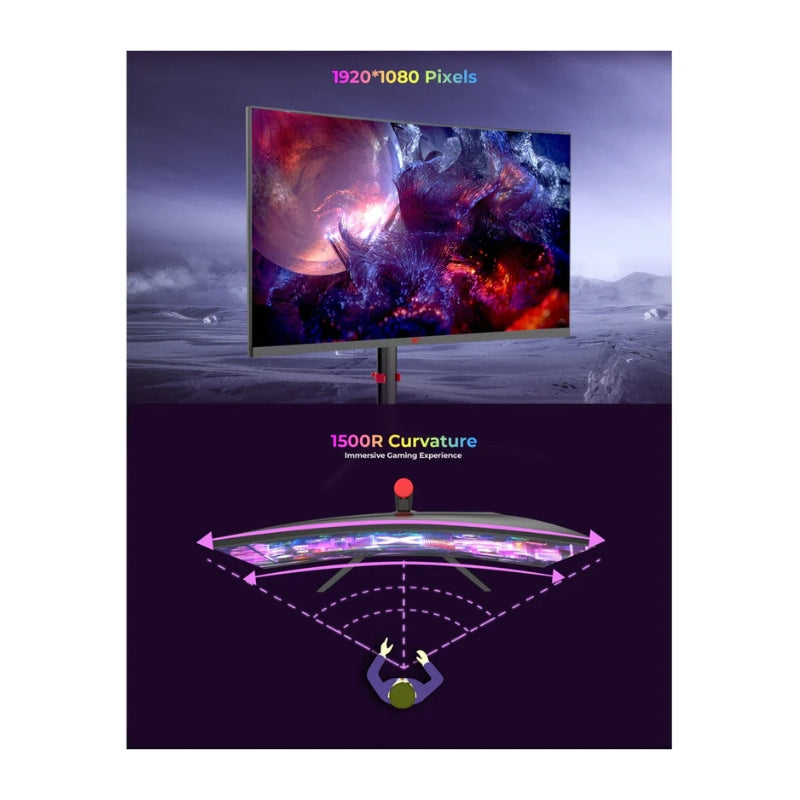 شاشة HAVIT المنحنية بقياس 27 بوصة توفر زاوية مشاهدة أوسع وإحساسًا أكبر بالاندماج داخل اللعبة، مع تقليل تشوه الحواف. معدل تحديث 200Hz وزمن استجابة 1ms يمنحانك تفوقًا واضحًا في الألعاب التنافسية. تدعم تقنيات HDR وFreeSync لتجربة بصرية أكثر سلاسة وواقعية، مع تصميم أنيق بدون حواف تقريبًا وإضاءة خلفية جذابة.