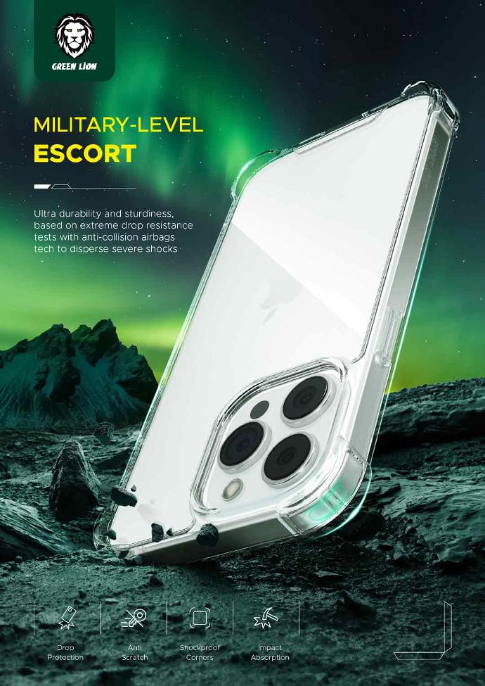 Green Lion Anti-Shock Case – غطاء جرين ليون مقاوم للصدمات لهاتف iPhone 16 Plus – شفاف