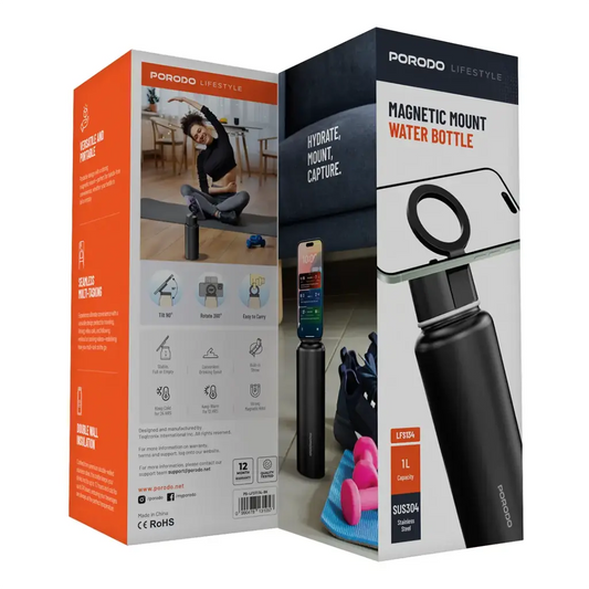 Porodo Lifestyle Magsafe Bottle 1L Black - مطارة مع ستاند ماك سيف بسعة 1 لتر من بورودو اسود