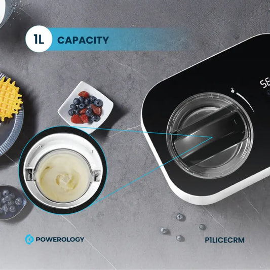 Powerology 1L Ice Cream Machine with Touch Display White - ماكنة صنع الايس كريم بسعة 1 لتر مع شاشة لمس من باورولوجي ابيض