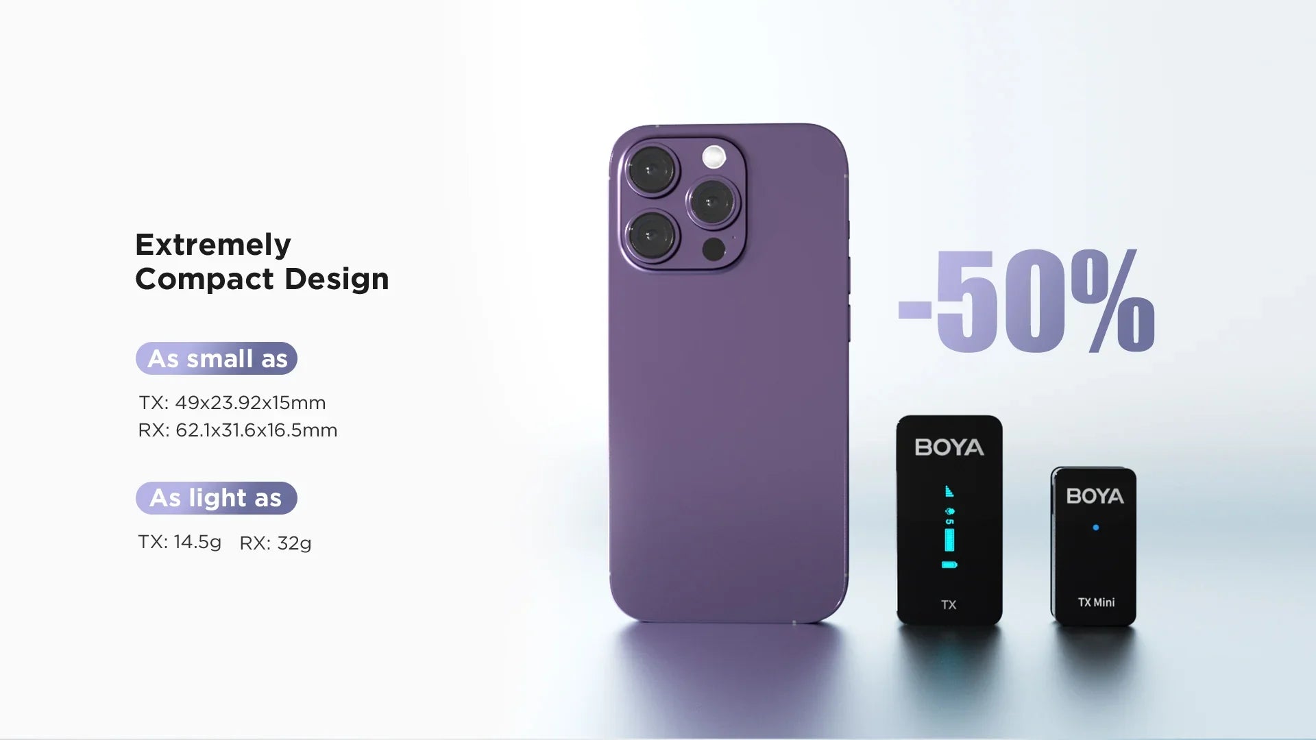 يقدم ميكروفون BOYA BY-XM6-S1 Mini من شركة BOYA أداء صوتي احترافي مخصص للاستخدام مع الكاميرات، حيث يعتمد على تقنية نقل لاسلكي بتردد 2.4GHz لضمان صوت واضح ومستقر أثناء التسجيل. يتميز بتصميم مدمج وسهل الحمل مع شاشة OLED على المستقبل لعرض معلومات الصوت والبطارية، إضافة إلى مدى تشغيل يصل حتى 100 متر في الظروف المفتوحة.