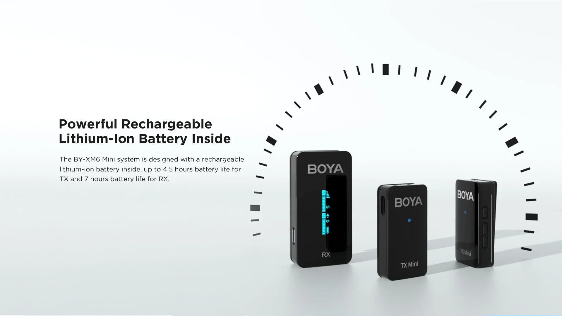 - بطارية تدوم حتى 7 ساعات للمستقبل و4.5 ساعات للمرسل