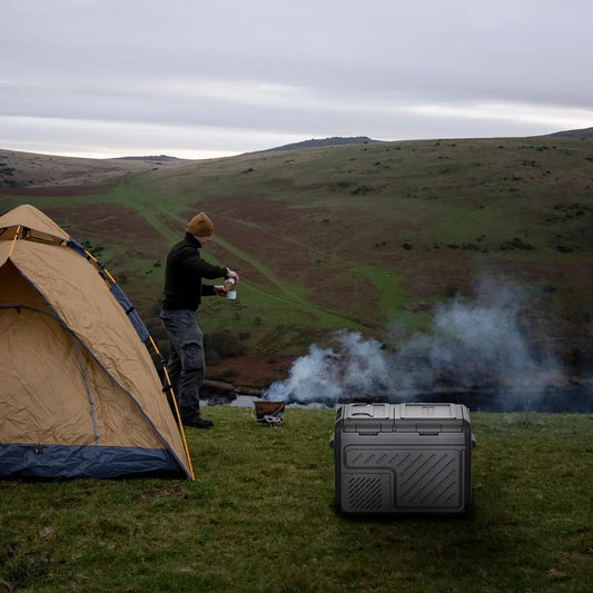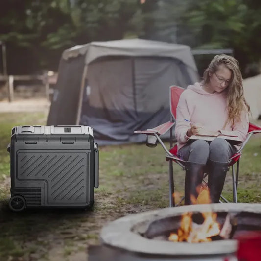Powerology Portable Fridge 60L with Dual Compartment and Trolly Gray - ثلاجة محمولة وفريزر بسعة 60 لتر من باورولوجي