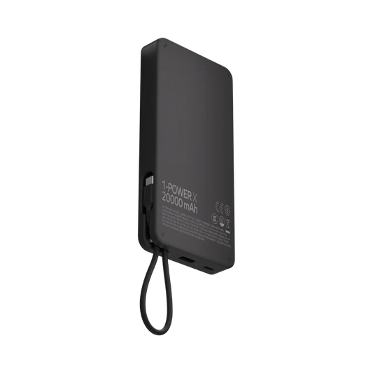 Momax Power X1 Battery Pack 20000mAh with Built-in USB-C Cable Black - باوربنك 20000 ملي امبير 30 واط مع كيبل تايب سي مدمج من موماكس اسود