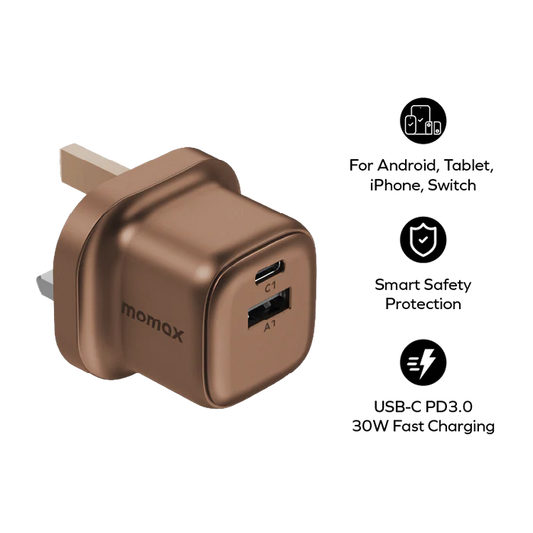 Momax Charge &Port GaN 65W charger (UK) (Gold)[1 port / USB-C] - شاحن 65 واط من موماكس