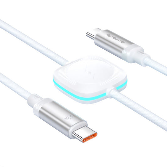 Porodo 2in1 USB-C to USB-C 60W Cable with Wireless Watch Charger 1.2M White - كيبل تايب سي تايب سي 60 واط مع مع شاحن ساعة لاسلكي 1.2 متر من بورودو