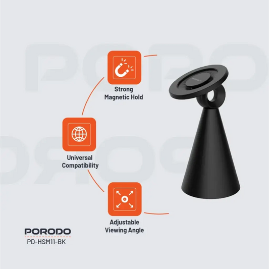 Porodo MagSafe Adjustable Mobile Phone Holder Black - ستاند هاتف مكتبي ماك سيف قابل للتعديل من بورودو