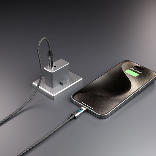 Porodo 60W Type-C to Type-C Braided Cable with PD Display 1.2M Black - كيبل تايب سي تايب سي 60 واط من بورودو