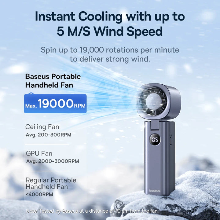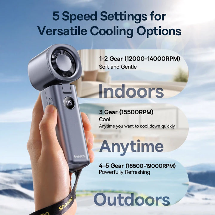 تغلب على الحر مع مروحة Baseus GoTrip DT1 المحمولة عالية السرعة، الحل الأمثل للتبريد الفوري أينما كنت. تتميز هذه المروحة اليدوية القابلة للطي بقوة دوران تصل إلى 19,000 دورة في الدقيقة، مما يوفر نسيمًا قويًا وفوريًا لتخفيف الحر. مع بطارية مدمجة بسعة 4000mAh، يمكنك الاستمتاع بتبريد طويل الأمد مع تصميم مدمج وخفيف الوزن، مثالية للسفر، المكتب، أو أي نشاط خارجي. تحكم كامل في التبريد بفضل 5 مستويات سرعة قابلة للتخصيص وشاشة LED واضحة لمتابعة حالة البطارية.