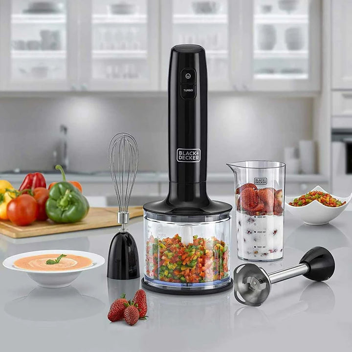 خلاط يدوي 600 واط مع وعاء تقطيع وشفرات فولاذية من بلاك+ديكر – Black+Decker 600W Hand Blender with Chopping Bowl and Steel Blades