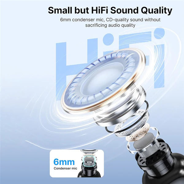 - خفيف ومحمول: وزن الميكروفون 12 جم، والمستقبل 10 جم، مثالي للاستخدام الخارجي والتنقل.