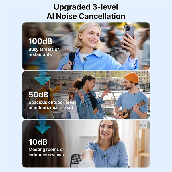 نال Boya Mini-07 Wireless Microphone رضا المستخدمين بفضل حجمه الصغير، سهولة استخدامه، وجودة الصوت الاحترافية. تقنية إلغاء الضوضاء بالذكاء الاصطناعي جعلت الصوت واضحًا حتى في البيئات الصاخبة، مما يجعله مثاليًا للمقابلات، مدونات الفيديو، والبث المباشر أثناء التنقل. تصميمه الخفيف والقابل للحمل يمنح حرية كاملة أثناء التصوير أو التسجيل، مما يجعله أداة مميزة لكل صناع المحتوى والمهتمين بالصوت الاحترافي.