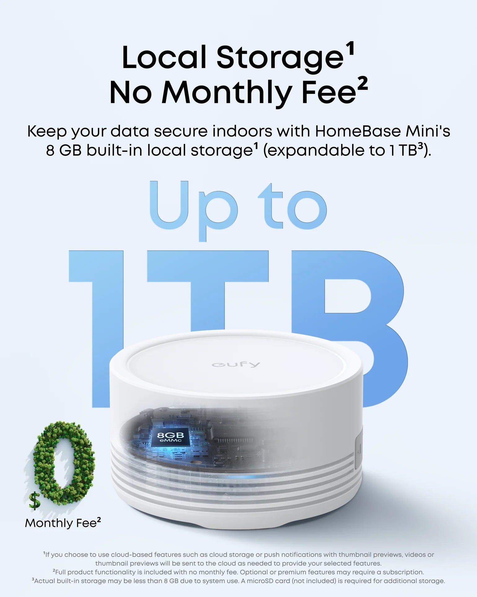- يدعم HomeBase Mini بطاقات microSD حتى 1 تيرابايت.