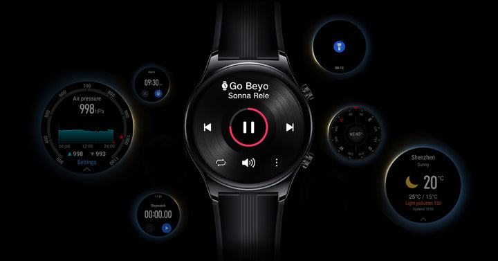 - الأداء والميزات: دعم أكثر من 100 وضع رياضي، حاسبة الضغط، مساعد يومي (موسيقى، منبه، طقس، بوصلة، فلاش)، رد سريع على المكالمات.