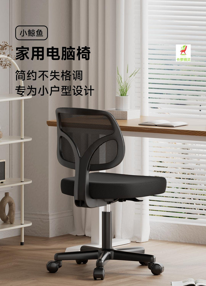 LITTLE WHALE COMPUTER CHAIR LEISURE HOME EXQUISITE SMALL OFFICE CHAIR ERGONOMIC CHAIR BLACK NO CUSHION - كرسي كمبيوتر صغير بتصميم مريح وعصري بدون مساند