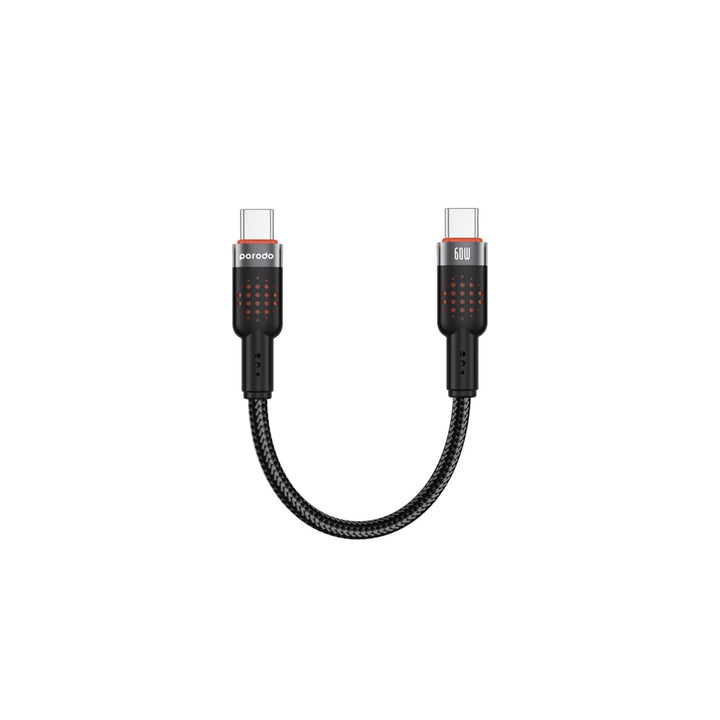 Porodo Alum Alloy Braided Cable Type-C to C 60W 25cm – Black