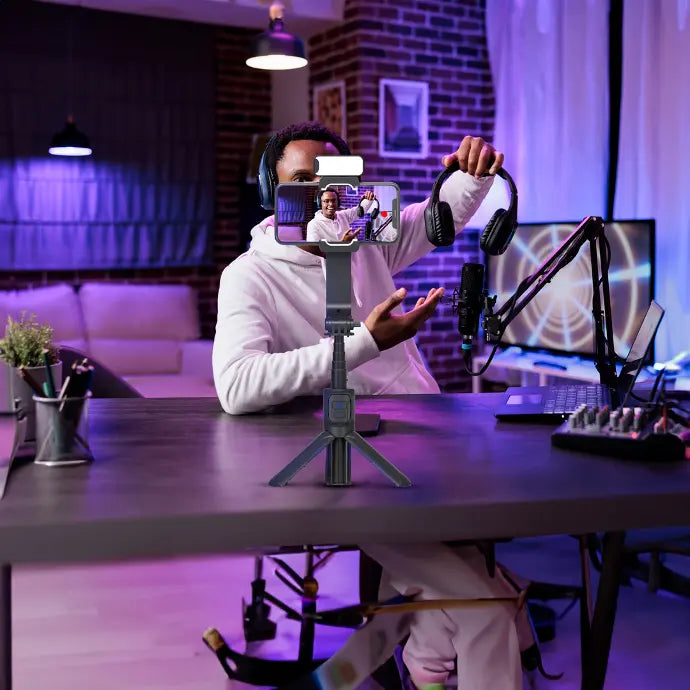 ارتقِ بجودة تسجيل الفيديو مع Porodo Anti-Shake Gimbal الأسود، المثبت ثنائي المحور المصمم لمنحك ثباتًا ودقة عالية في التصوير. يتميز بتحكم مركزي قابل للدوران لتسهيل التعديلات، إضافة إلى مصباح LED قابل للفصل بثلاثة أوضاع إضاءة، وزمن تشغيل يصل إلى 8 ساعات، مما يجعله الخيار الأمثل للهواتف الذكية وكاميرات الحركة في التصوير الاحترافي.