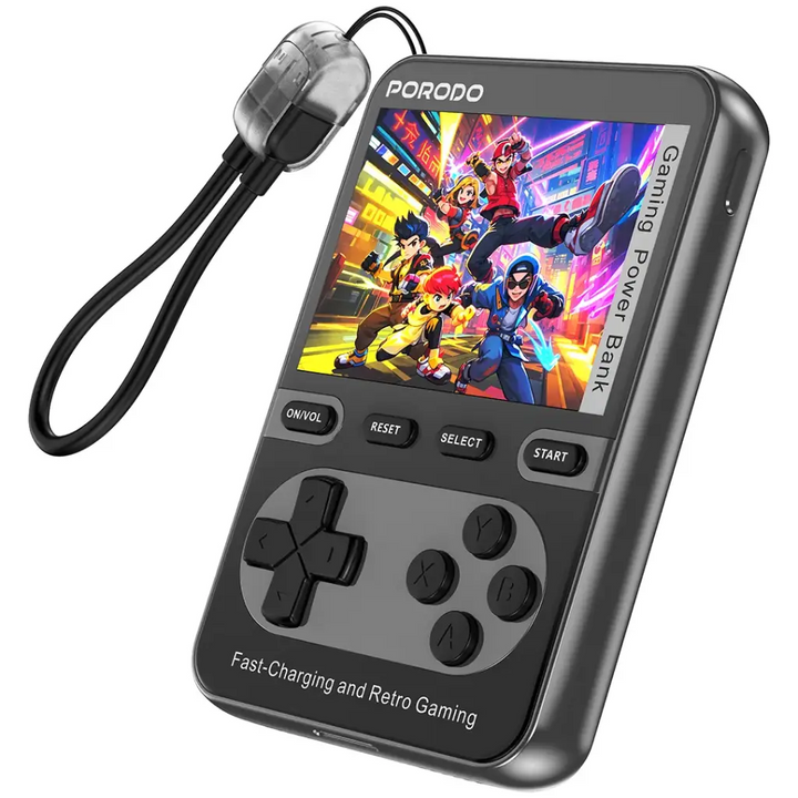 استمتع بالشحن السريع وتجربة الألعاب في نفس الوقت مع Porodo Gaming Arcadevolt 10000mAh MagSafe Power Bank باللون الأسود. هذه البطارية المحمولة تجمع بين شحن USB-C فائق السرعة بقدرة 20 واط وإمكانيات الشحن اللاسلكي بقدرات 15 واط و10 واط و7.5 واط و5 واط، مع مغناطيس قوي يثبت البطارية على أي جهاز متوافق مع MagSafe. مزودة بشاشة HD بحجم 2.8 بوصة، وتحتوي على أكثر من 100 لعبة مدمجة مع أزرار D-PAD الكلاسيكية لتجربة ألعاب ممتعة أثناء التنقل، بالإضافة إلى كابل لربط Type-C لسهولة الحمل.