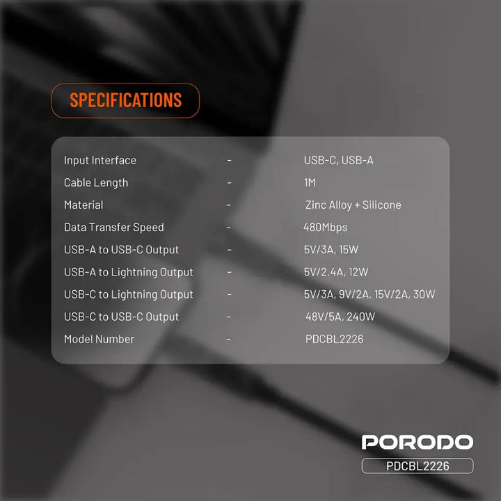 English Name: Porodo Powerglow 4-In-1 High-Speed Charging Cable