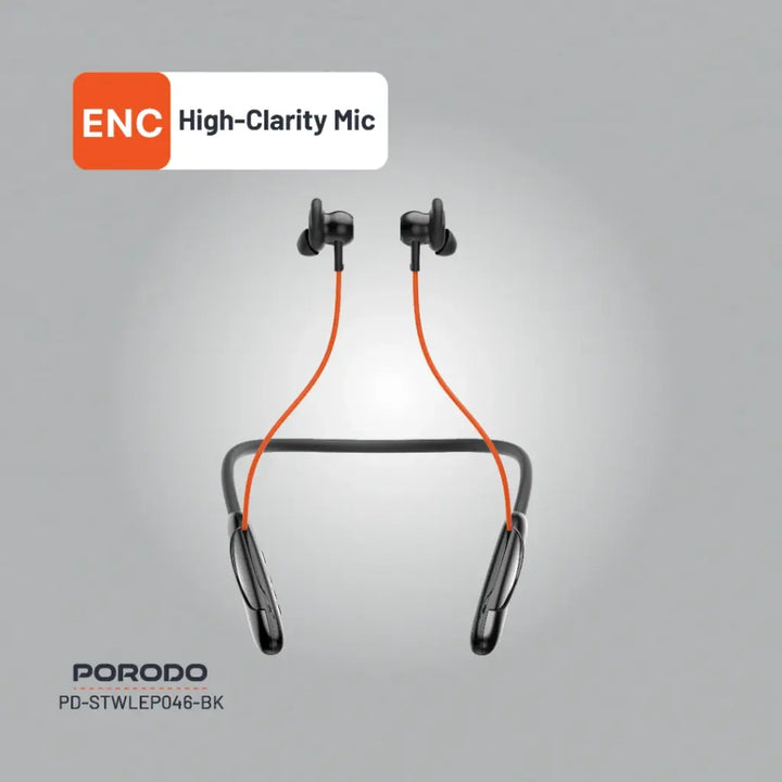 English Name: Porodo Soundtec Magnetic INR Wireless Neckband - Black