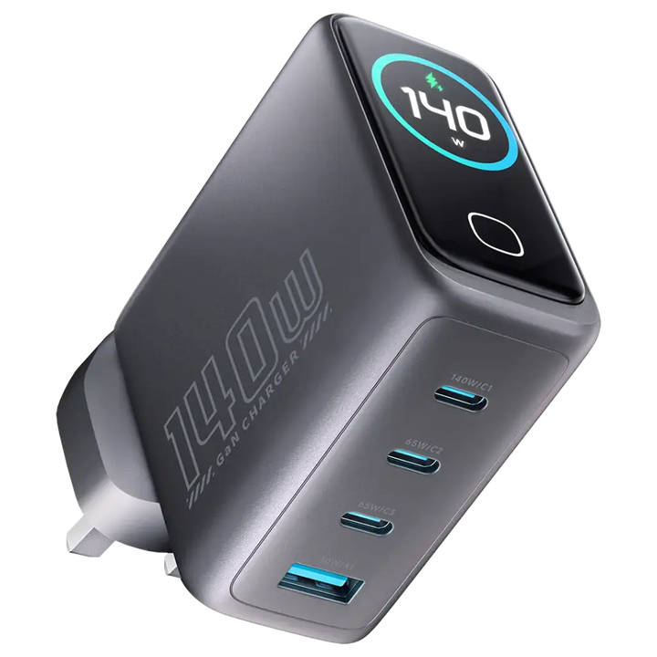 English Name: Powerology 140W 4-Port GaN Charger with TFT Display - Black