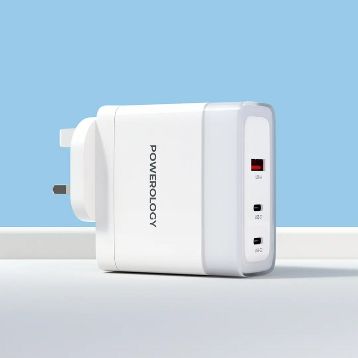 Powerology 3-Port Fast Charging Adapter White - شاحن 100 واط بثلاث منافذ من باورولوجي ابيض