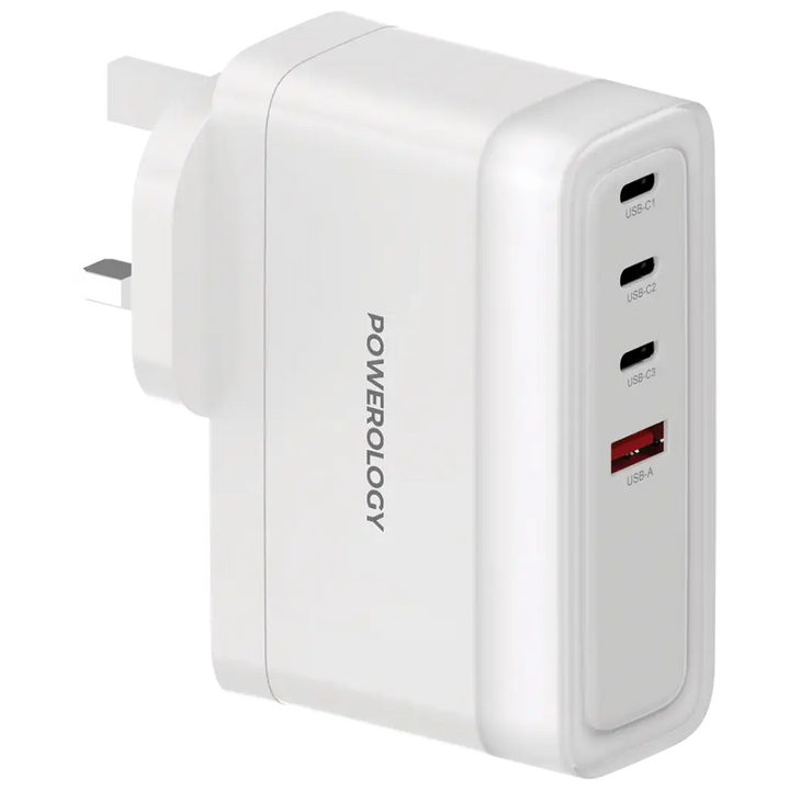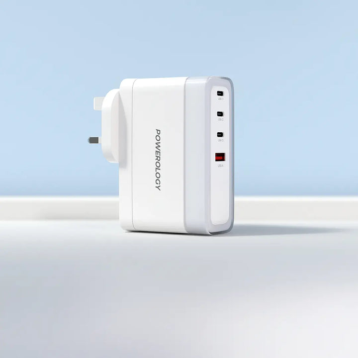 Powerology 4-Port Fast Charging Adapter 140W White - شاحن 140 واط باربعة منافذ من باورولوجي ابيض